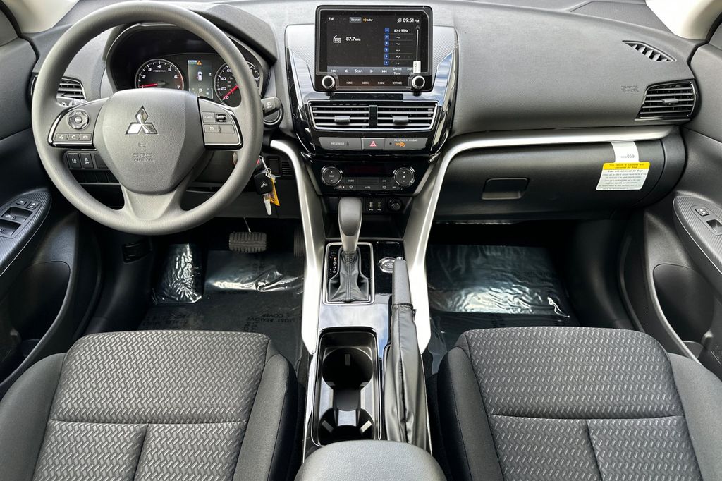 Diamond White 2026 Mitsubishi Eclipse Cross ES 4WD CVT 1.5L I4 DI Turbocharged DOHC 16V LEV3-ULEV125 152hp 4 Speakers, 4-Wheel Disc Brakes, ABS brakes, Air Conditioning, Alloy wheels, AM/FM radio, Android Auto & Apple CarPlay, Automatic temperature control, Brake assist, Bumpers: body-color, Cloth Fabric Seating Surfaces, Driver door bin, Driver vanity mirror, Dual front impact airbags, Dual front side impact airbags, Electronic Stability Control, Exterior Parking Camera Rear, Four wheel independent suspension, Front anti-roll bar, Front Bucket Seats, Front Center Armrest, Front fog lights, Front reading lights, Heated door mirrors, Illuminated entry, Knee airbag, Low tire pressure warning, Occupant sensing airbag, Outside temperature display, Overhead airbag, Overhead console, Panic alarm, Passenger door bin, Passenger vanity mirror, Power door mirrors, Power steering, Power windows, Radio data system, Radio: AM/FM 8.0" Smartphone-Link Display Audio, Rear anti-roll bar, Rear seat center armrest, Rear window defroster, Rear window wiper, Remote keyless entry, Security system, Speed control, Speed-sensing steering, Split folding rear seat, Spoiler, Steering wheel mounted audio controls, Tachometer, Telescoping steering wheel, Tilt steering wheel, Traction control, Trip computer, Turn signal indicator mirrors, Variably intermittent wipers, Wheels: 16" x 6.5J Two-Tone Alloy.