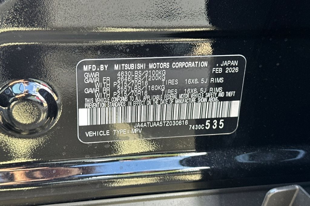 Labrador Black 2026 Mitsubishi Eclipse Cross ES 4WD CVT 1.5L I4 DI Turbocharged DOHC 16V LEV3-ULEV125 152hp 4 Speakers, 4-Wheel Disc Brakes, ABS brakes, Air Conditioning, Alloy wheels, AM/FM radio, Android Auto & Apple CarPlay, Automatic temperature control, Brake assist, Bumpers: body-color, Cloth Fabric Seating Surfaces, Driver door bin, Driver vanity mirror, Dual front impact airbags, Dual front side impact airbags, Electronic Stability Control, Exterior Parking Camera Rear, Four wheel independent suspension, Front anti-roll bar, Front Bucket Seats, Front Center Armrest, Front fog lights, Front reading lights, Heated door mirrors, Illuminated entry, Knee airbag, Low tire pressure warning, Occupant sensing airbag, Outside temperature display, Overhead airbag, Overhead console, Panic alarm, Passenger door bin, Passenger vanity mirror, Power door mirrors, Power steering, Power windows, Radio data system, Radio: AM/FM 8.0" Smartphone-Link Display Audio, Rear anti-roll bar, Rear seat center armrest, Rear window defroster, Rear window wiper, Remote keyless entry, Security system, Speed control, Speed-sensing steering, Split folding rear seat, Spoiler, Steering wheel mounted audio controls, Tachometer, Telescoping steering wheel, Tilt steering wheel, Traction control, Trip computer, Turn signal indicator mirrors, Variably intermittent wipers, Wheels: 16" x 6.5J Two-Tone Alloy.