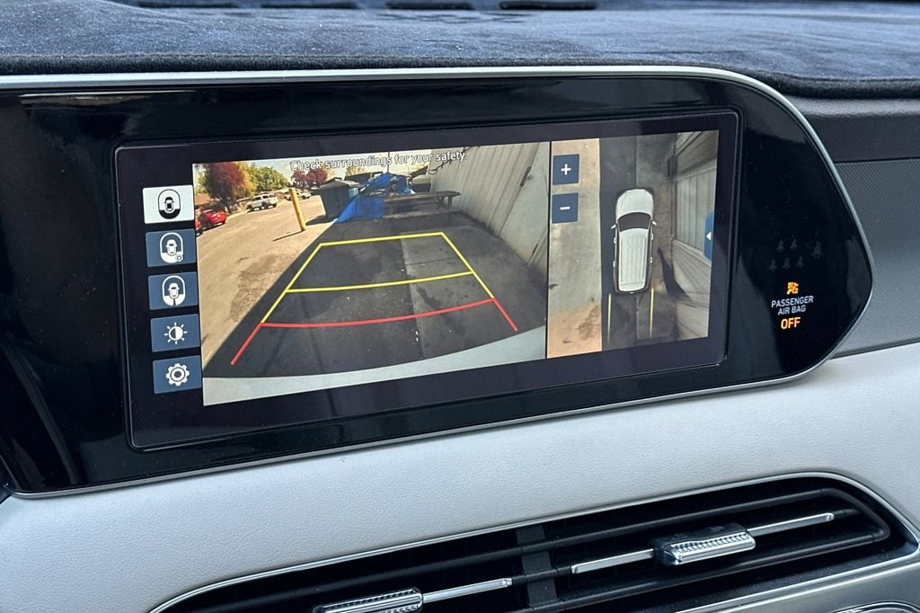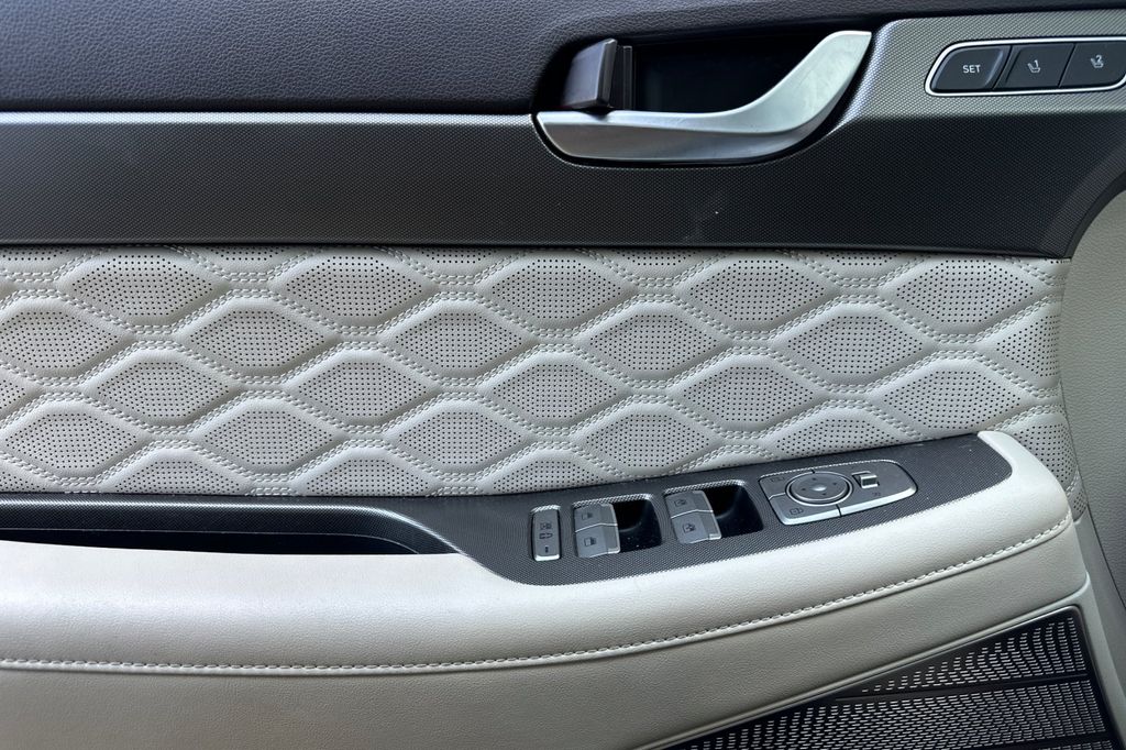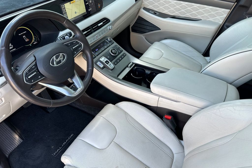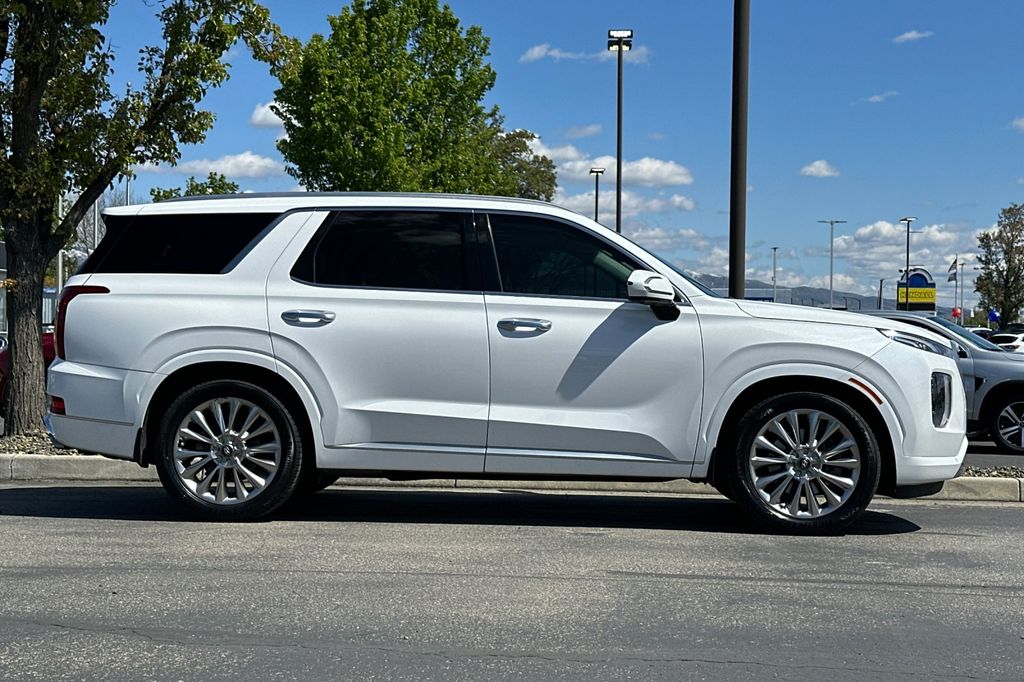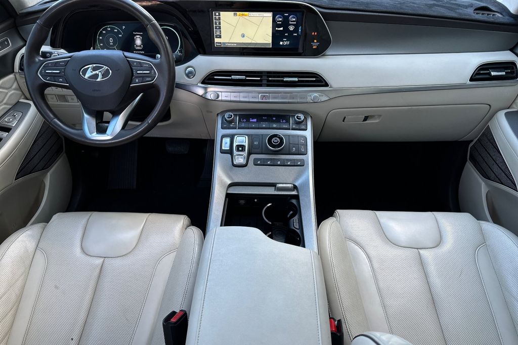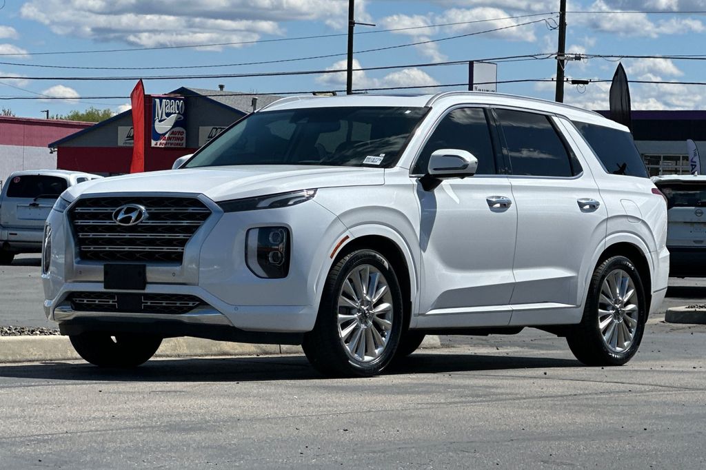 Hyper White 2020 Hyundai Palisade Limited FWD 8-Speed Automatic with SHIFTRONIC V6 12 Speakers, 3.648 Axle Ratio, 3rd row seats: split-bench, 4-Wheel Disc Brakes, ABS brakes, Air Conditioning, Alloy wheels, AM/FM radio: SiriusXM, Apple CarPlay & Android Auto, Auto High-beam Headlights, Auto-dimming Rear-View mirror, Auto-leveling suspension, Automatic temperature control, Brake assist, Bumper Applique, Bumpers: body-color, Cargo Tray, Carpeted Floor Mats, Compass, Delay-off headlights, Driver door bin, Driver vanity mirror, Dual front impact airbags, Dual front side impact airbags, Electronic Stability Control, Emergency communication system, Four wheel independent suspension, Front anti-roll bar, Front Bucket Seats, Front Center Armrest, Front dual zone A/C, Front reading lights, Fully automatic headlights, Garage door transmitter: HomeLink, harman/kardon® Speakers, Heads-Up Display, Heated & Ventilated Front Bucket Seats, Heated door mirrors, Heated front seats, Heated rear seats, Heated steering wheel, Illuminated entry, Knee airbag, Low tire pressure warning, Memory seat, Mudguards, Navigation System, Occupant sensing airbag, Option Group 01, Outside temperature display, Overhead airbag, Overhead console, Panic alarm, Passenger door bin, Passenger vanity mirror, Power door mirrors, Power driver seat, Power Liftgate, Power moonroof, Power passenger seat, Power steering, Power windows, Premium Nappa Leather Seat Trim, Radio data system, Radio: AM/FM/MP3 Premium Audio System, Rain sensing wipers, Rear air conditioning, Rear anti-roll bar, Rear window defroster, Rear window wiper, Reclining 3rd row seat, Remote keyless entry, Security system, Speed control, Speed-sensing steering, Split folding rear seat, Spoiler, Steering wheel mounted audio controls, Tachometer, Telescoping steering wheel, Tilt steering wheel, Traction control, Trip computer, Turn signal indicator mirrors, Variably intermittent wipers, Ventilated front seats, Ventilated rear seats, Wheels: 20" x 7.5J 14-Spoke Premium Finish Alloy.