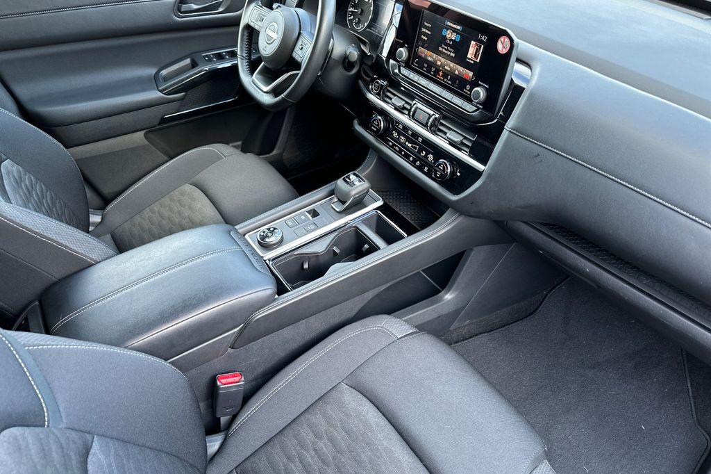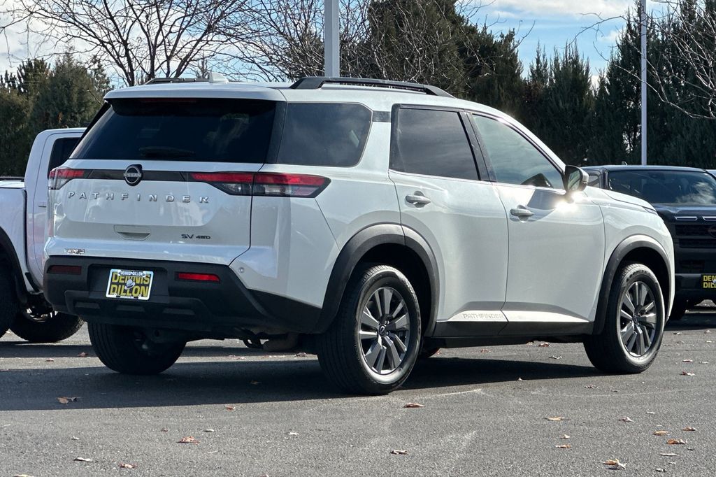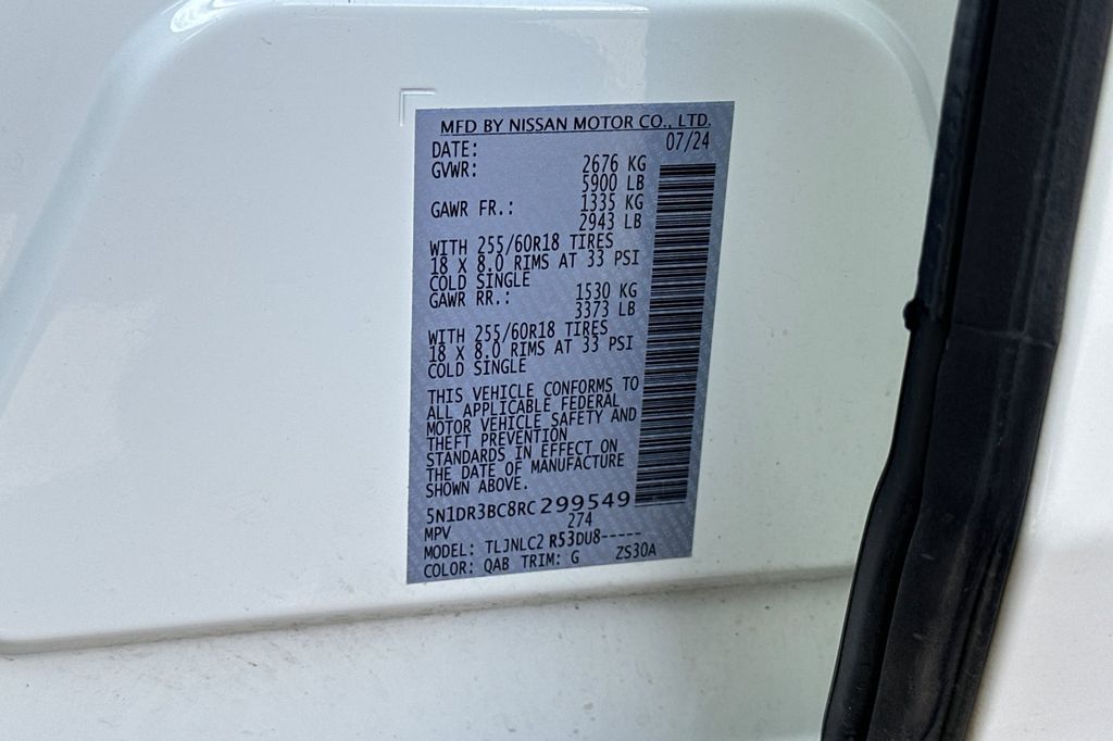 Pearl White Tricoat 2024 Nissan Pathfinder SV 4WD 9-Speed Automatic 3.5L V6 DOHC 4WD, 3rd row seats: bench, 4-Wheel Disc Brakes, 6 Speakers, ABS brakes, Air Conditioning, Alloy wheels, AM/FM radio: SiriusXM, Auto High-beam Headlights, Automatic temperature control, Axle Ratio: 4.334, Bench Seat Carpeted Floor Mats (Set of 4), Brake assist, Bumpers: body-color, Cloth Seating Surfaces, Delay-off headlights, Driver door bin, Driver vanity mirror, Dual front impact airbags, Dual front side impact airbags, Electronic Stability Control, Emergency communication system, Four wheel independent suspension, Front anti-roll bar, Front Bucket Seats, Front Center Armrest, Front dual zone A/C, Front reading lights, Fully automatic headlights, Heated door mirrors, Heated Front Bucket Seats, Heated front seats, Illuminated entry, Knee airbag, Leather steering wheel, Low tire pressure warning, NissanConnect featuring Apple CarPlay and Android Auto, Occupant sensing airbag, Outside temperature display, Overhead airbag, Overhead console, Panic alarm, Passenger door bin, Passenger vanity mirror, Power door mirrors, Power driver seat, Power steering, Power windows, Radio data system, Radio: AM/FM Audio System w/NissanConnect, Rear air conditioning, Rear anti-roll bar, Rear Parking Sensors, Rear reading lights, Rear seat center armrest, Rear side impact airbag, Rear window defroster, Rear window wiper, Reclining 3rd row seat, Remote keyless entry, Security system, Speed control, Speed-sensing steering, Split folding rear seat, Spoiler, Steering wheel mounted audio controls, Tachometer, Telescoping steering wheel, Tilt steering wheel, Traction control, Trip computer, Turn signal indicator mirrors, Variably intermittent wipers, Wheels: 18" x 8J Painted Alloy, 4WD.