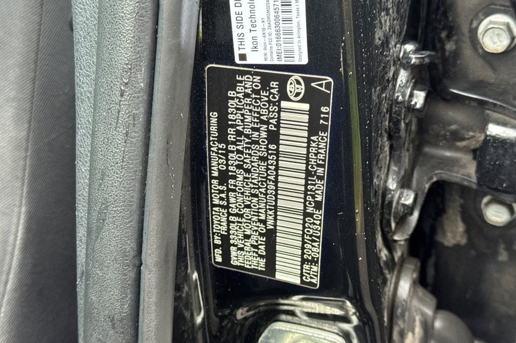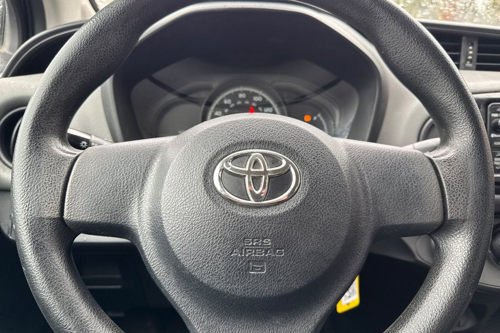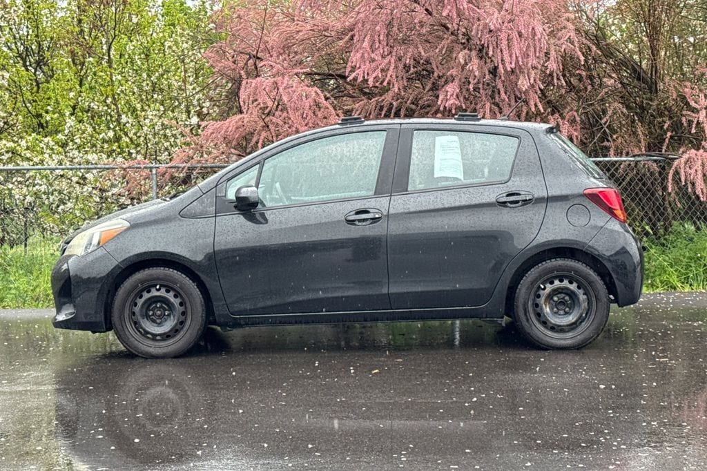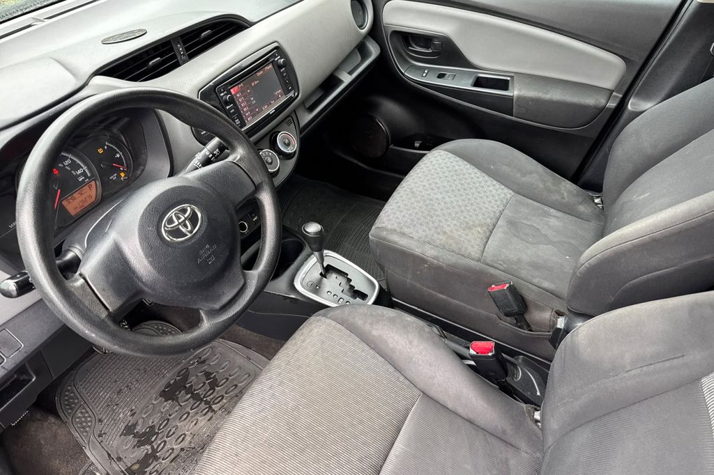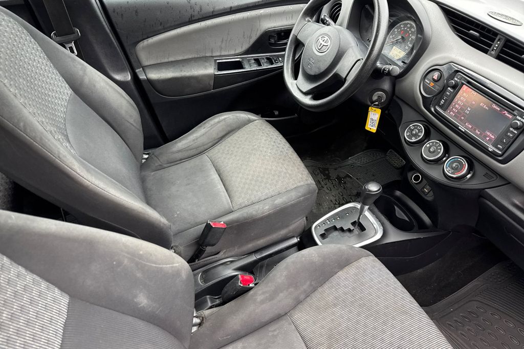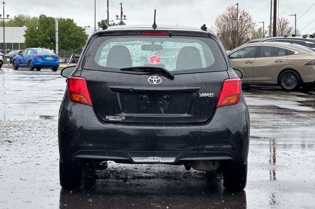 Black Sand Pearl 2015 Toyota Yaris L FWD 4-Speed Automatic with Overdrive 1.5L I4 DOHC VVT-i 16V 6 Speakers, ABS brakes, Air Conditioning, AM/FM radio, Brake assist, Bumpers: body-color, Carpet Floor Mats & Cargo Mat, CD player, Driver door bin, Driver vanity mirror, Dual front impact airbags, Dual front side impact airbags, Electronic Stability Control, Fabric Seat Trim (FQ), Front anti-roll bar, Front Bucket Seats, Front reading lights, Front wheel independent suspension, Knee airbag, Low tire pressure warning, Occupant sensing airbag, Outside temperature display, Overhead airbag, Passenger door bin, Passenger vanity mirror, Power steering, Power windows, Radio data system, Radio: Entune Audio, Rear Spoiler, Rear window defroster, Rear window wiper, Split folding rear seat, Tilt steering wheel, Traction control, Trip computer, Wheels: 5.5J x 15" Black Steel w/Full Wheel Covers.