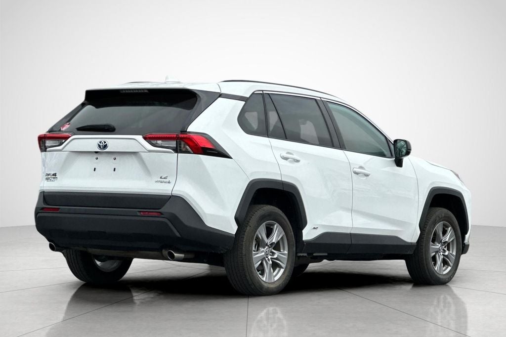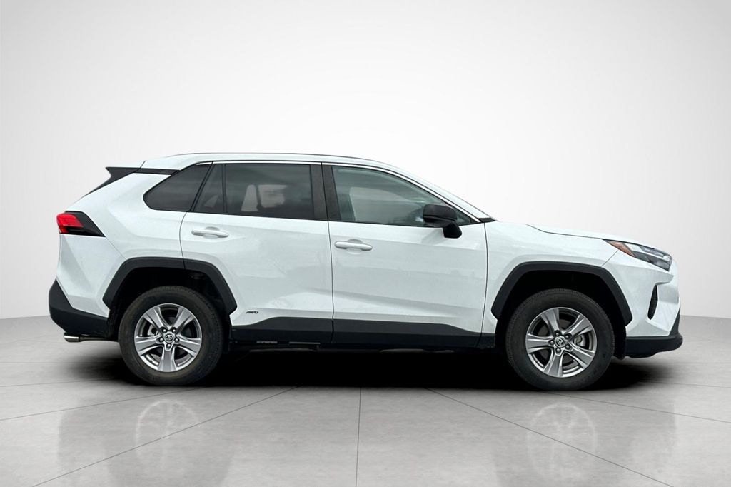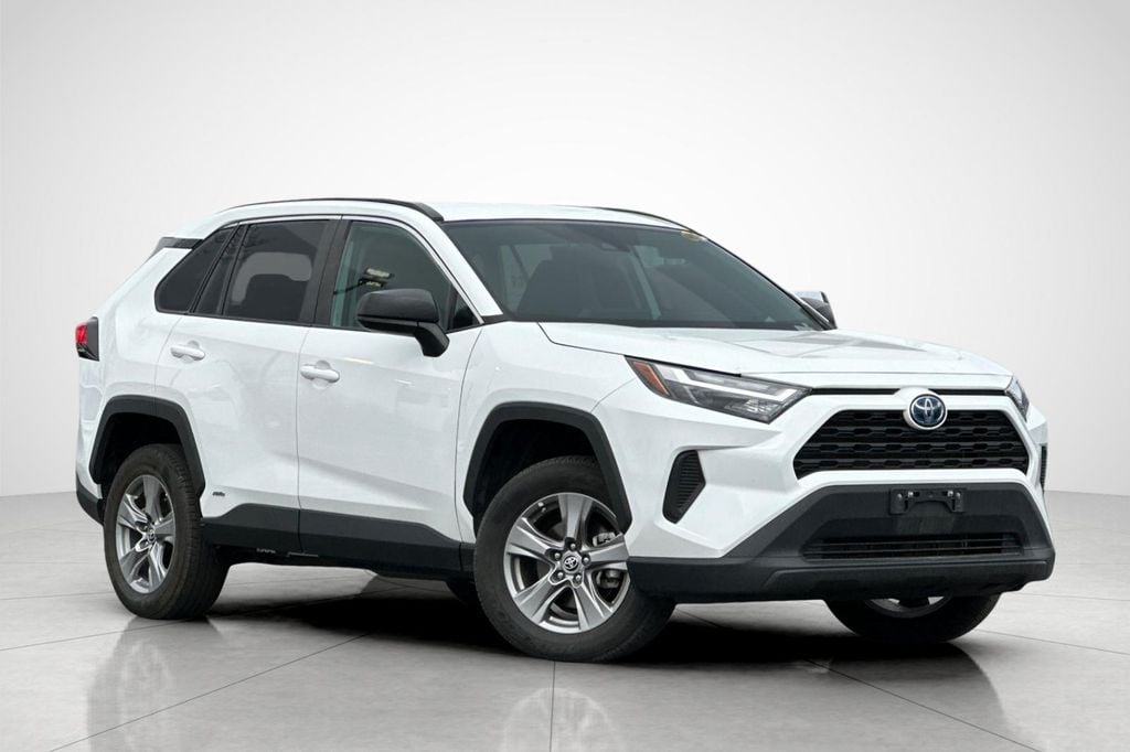 White 2023 Toyota RAV4 Hybrid LE AWD eCVT 2.5L 4-Cylinder 4-Wheel Disc Brakes, 6 Speakers, ABS brakes, Air Conditioning, Alloy wheels, AM/FM radio: SiriusXM, Auto High-beam Headlights, Automatic temperature control, Axle Ratio: TBD, Brake assist, Bumpers: body-color, Driver door bin, Driver vanity mirror, Dual front impact airbags, Dual front side impact airbags, Electronic Stability Control, Emergency communication system: Safety Connect (1-year trial), Exterior Parking Camera Rear, Fabric Seat Trim, Four wheel independent suspension, Front anti-roll bar, Front Bucket Seats, Front Center Armrest, Front dual zone A/C, Front reading lights, Front Sport Seats, Illuminated entry, Knee airbag, Lane Departure Warning System, Low tire pressure warning, Occupant sensing airbag, Outside temperature display, Overhead airbag, Overhead console, Panic alarm, Passenger door bin, Passenger vanity mirror, Power door mirrors, Power steering, Power windows, Radio data system, Radio: AM/FM/XM Audio System, Rear anti-roll bar, Rear seat center armrest, Rear window defroster, Rear window wiper, Remote keyless entry, Speed control, Speed-sensing steering, Split folding rear seat, Spoiler, Steering wheel mounted audio controls, Telescoping steering wheel, Tilt steering wheel, Traction control, Trip computer, Wheels: 17" x 7.0J Silver Aluminum Alloy.